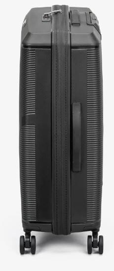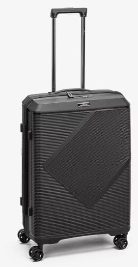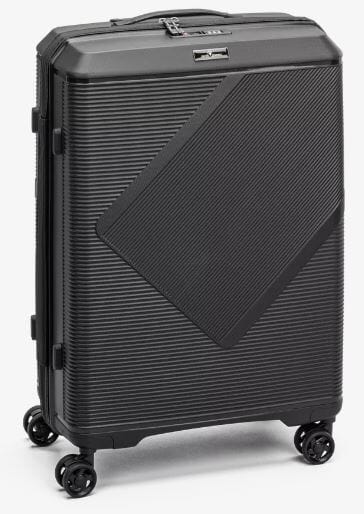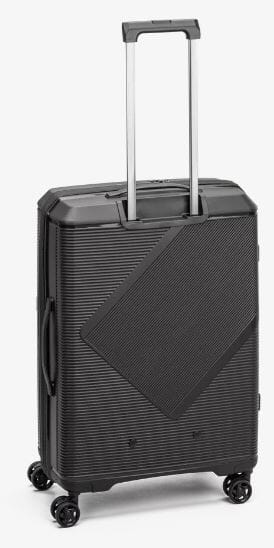 Støtdempende hjul. Den ribbede overflaten forsterker kofferten mot støt som kan oppstå