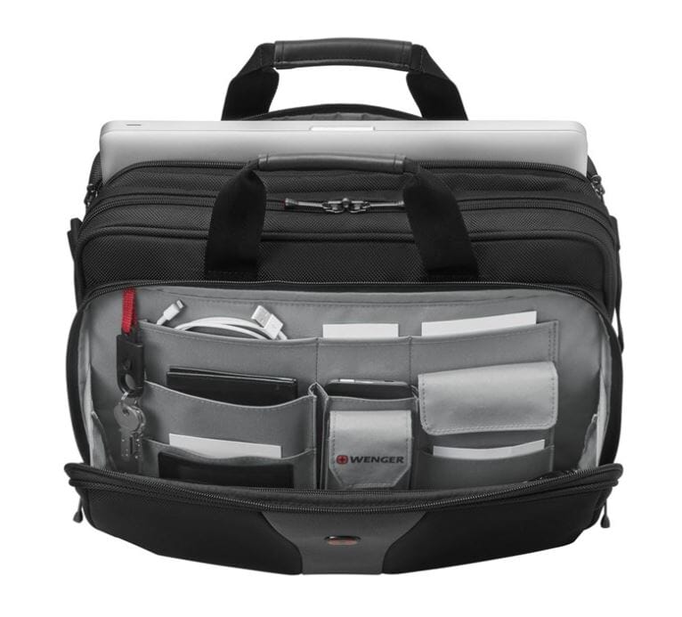 Legacy Double-Gusset gir trygghet for travle profesjonelle med et sikkerhetskontrollvennlig polstret rom som beskytter din 16” laptop,