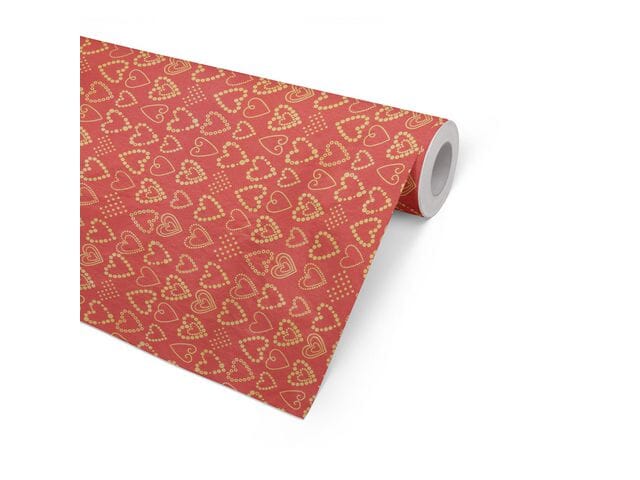 DISKRULL JULEPAPIR 100Mx57CM HJERTER RØD METALLIC