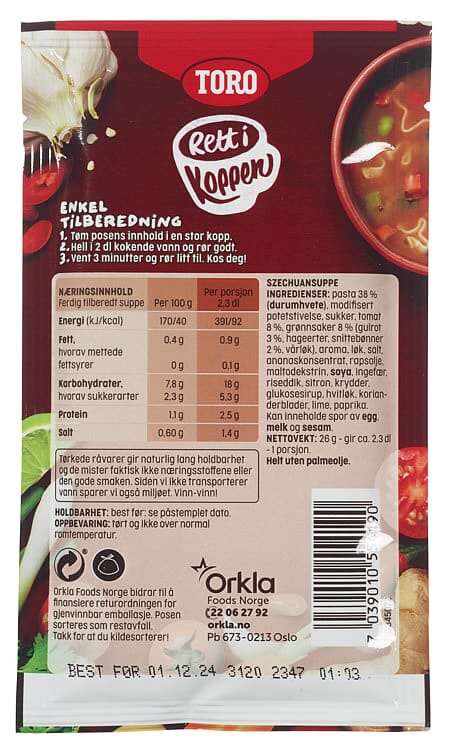 TORO Rett i koppen Schchuansuppe gir deg en varmende pause.