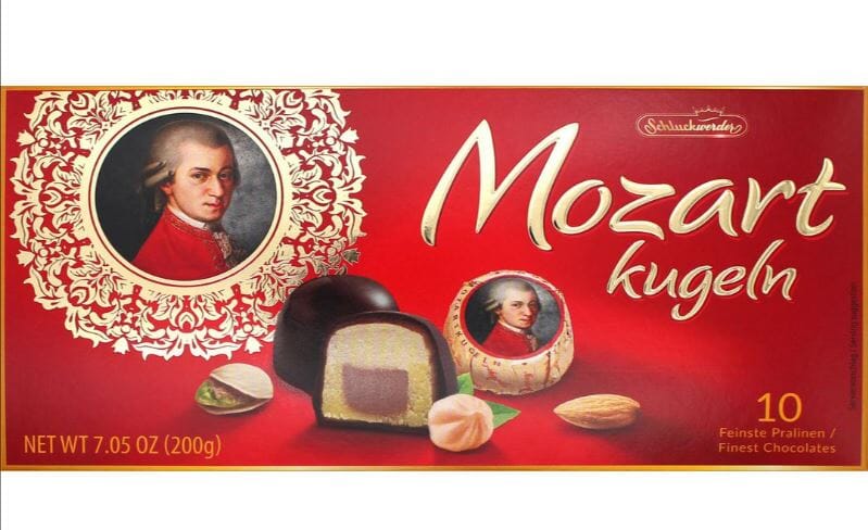 Esken inneholder 10 praliner, pakket inn for seg, fyllt med nougat, hasselnøtt og pistasj trukket i sjokolade.