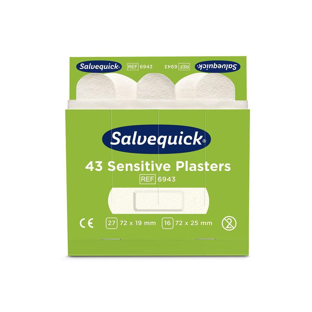 SALVEQUICK SENSITIVE PLASTER ER HVITE OG LATET AV POLYURETAN.