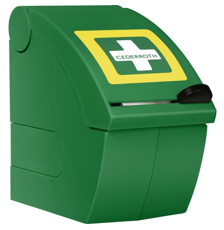 Dispenser med veggholder for Soft Foam Bandage 4,5 meter x 6 cm. Leveres fylt med Cederroth Soft Foam Bandage Blue 6cm x 4,5 m (REF 51011010).