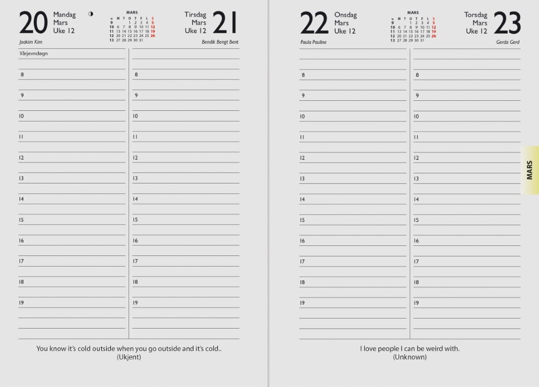 7.sans Inspirasjonskalender er en inspirasjonskilde for de fleste. Inspirasjonskalenderen gir deg tips og hint nesten hver dag. Hendig format gjør at den er kjekk å ha med seg i vesken overalt. Spiral gjør den enkel å bruke eller legge fra seg på pulten. Alle 7.sans produkter er miljøsertifisert etter anerkjente internasjonale standarder slik at de minst mulig påvirker vårt felles ytre miljø. Sidestørrelse: 11,7 x 16,8 cm Kartongomslag Spiralisert Hjørneperforering Med strikk 80 gr papir To dager pr. side Norsk Klokkeslett fra-til: 08:00-19:00 Røde søndager og helligdager Årsoversikt innværende og neste år Månedoversikt inneværende og neste år Notatsider 16 sider atlas Norske navnedager Norske helligdager