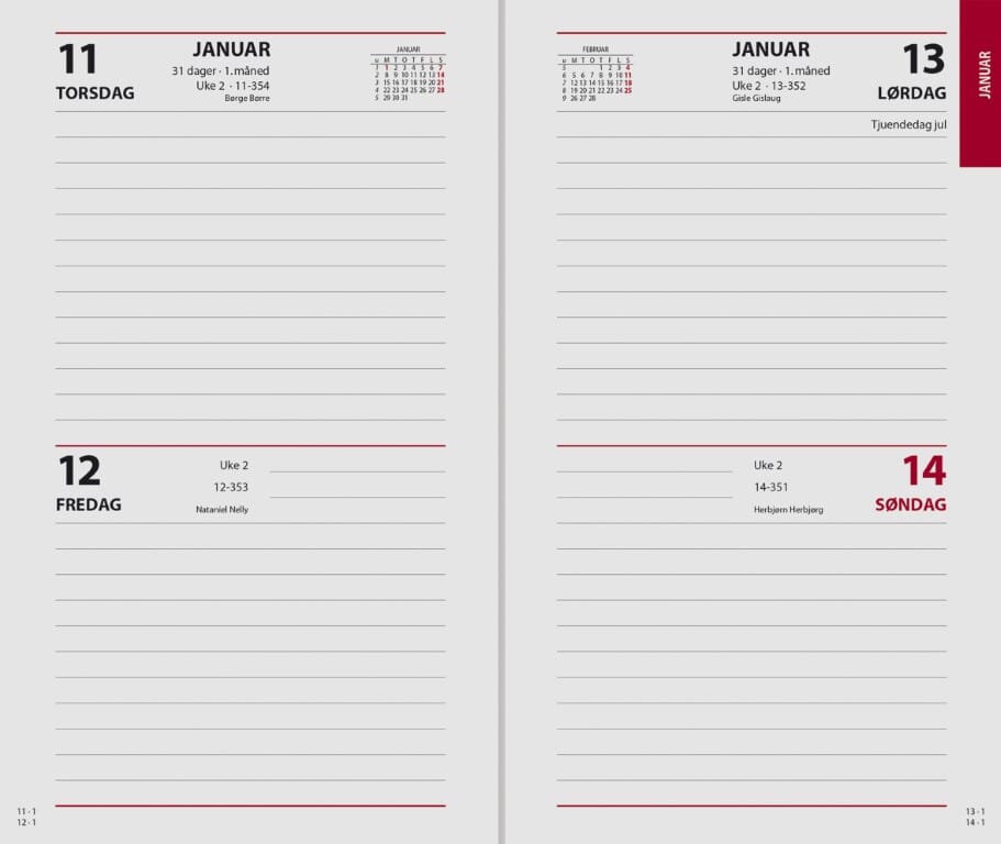 7.sans Spiralkalender er en hendig fleksibel kalender. Spiralkalender har 4 dager på et oppslag. Trykte månedtabbe gjør den enkel å bruke. Alle 7.sans produkter er miljøsertifisert etter anerkjente internasjonale standarder slik at de minst mulig påvirker vårt felles ytre miljø. Sidestørrelse: 11,7 x 19,7 cm Hjørneperforering 80 gr papir To dager pr. side Norsk Røde søndager og helligdager Årsoversikt innværende og neste år Månedoversikt inneværende år Notatsider Norske navnedager Norske helligdager