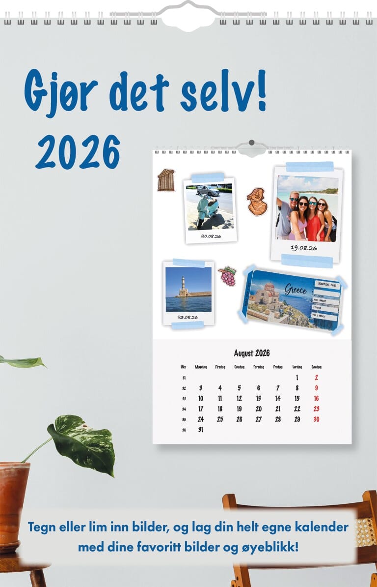 7.Sans Gjør det selv er en flott kalender som raskt kan bli en favoritt hos forelsdre eller besteforeldre. La dine barn tegne sine egne tanker, og gi det som gave. En gave som minst varer ett år. Alle 7.sans produkter er miljøsertifisert etter anerkjente internasjonale standarder slik at de minst mulig påvirker vårt felles ytre miljø. Sidestørrelse: 21 x 29 cm. Spiralisert. 140 gr papir. En måned pr. side. Norsk. Multifarger. Årsoversikt inneværende år. Norske helligdager