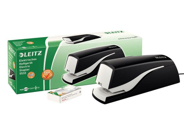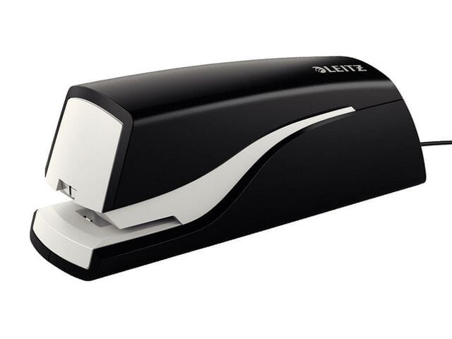 Den elektriske stiftemaskinen Leitz® 5532 kan brukes med én hånd for praktisk og effektiv bruk.