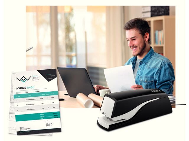 Heft sammen viktige dokumenter, og hold orden på dem på ett sted med stiftemaskinen Leitz® 5532.