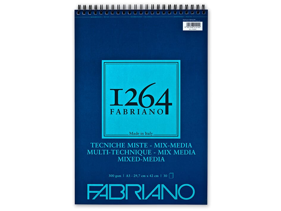 Mixed Media blokk med naturhvit, syrefritt papir på 300g med medium struktur.
