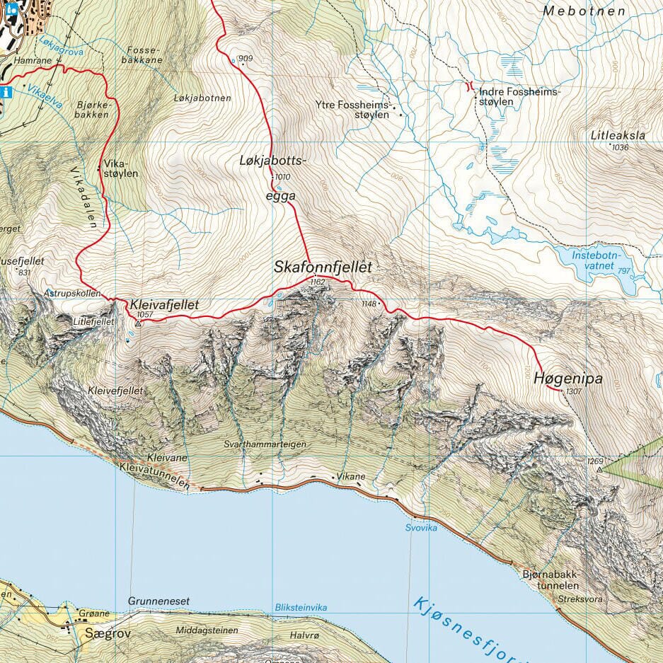For første gang framtrer fjellskrenter, større steiner, vassdrag og breer med en presisjon som tilsvarer virkeligheten. Kartet inneholder også flere stier enn noe kart tidligere over samme område.