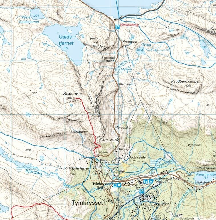 Kart i målestokk 1:25 000 gir god støtte til deg som går på topptur, driver med brevandring eller på andre måter forlater de merkede stiene i dalbunnen og finner egne ruter oppe i høyfjellet.