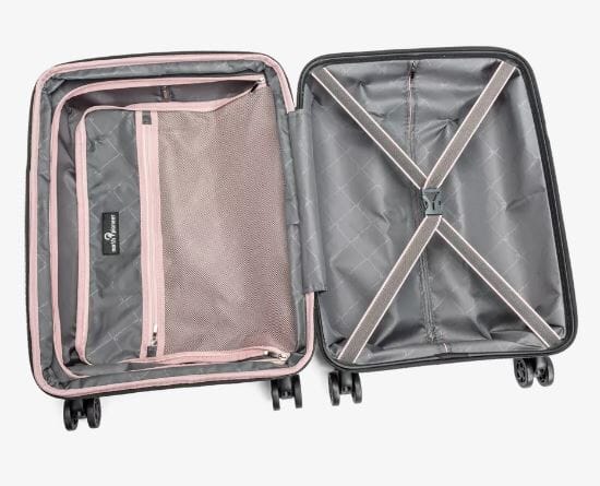 Uten utvidelse er kabinkofferten kun 20 cm bred og dermed tillatt som håndbagasje på de fleste lavprisfly.