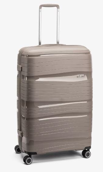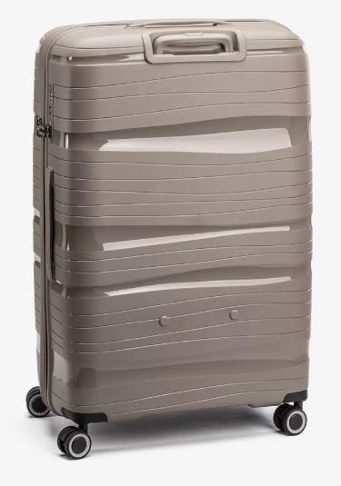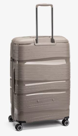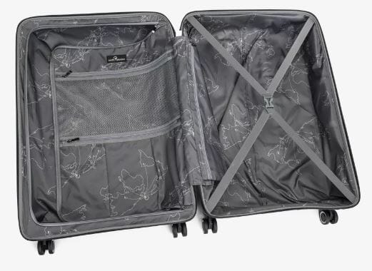 kryssbånd som holder klærne på plass. Kofferten er produsert i polypropylen plast, som er