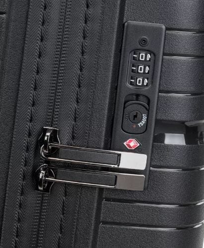 Kofferten er produsert i polypropylen plast, som er et solid, lett og fleksibelt materiale. Vi anbefaler at du sjekker med ditt flyselskap vedrørende informasjon om størrelse/mål på håndbagasje.