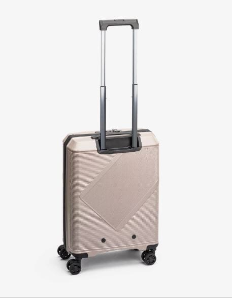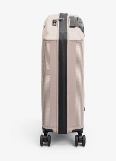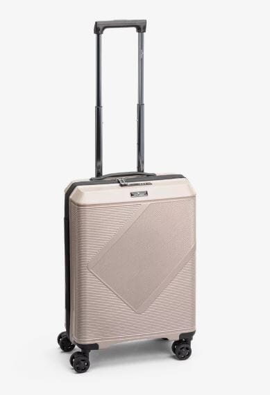 Kun 20 cm bred og dermed tillatt som håndbagasje på de fleste flyvninger. Støtdempende hjul. Den ribbede overflaten forsterker kofferten mot støt som kan oppstå under transport.