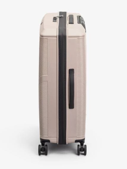 Støtdempende hjul. Den ribbede overflaten forsterker kofferten mot støt som kan oppstå under transport. Integrert TSA-kodelås gir god beskyttelse for innholdet ditt.