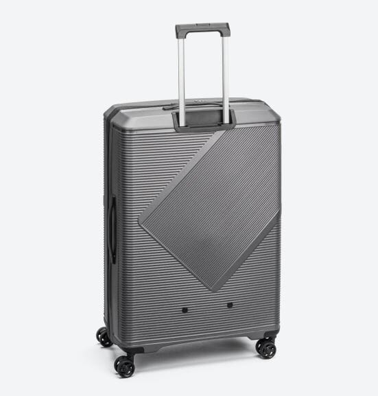 Støtdempende hjul. Den ribbede overflaten forsterker kofferten mot støt som kan oppstå