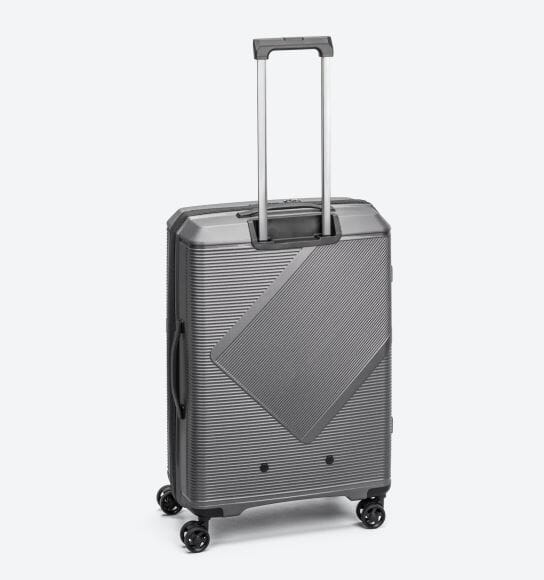 Støtdempende hjul. Den ribbede overflaten forsterker kofferten mot støt som kan oppstå
