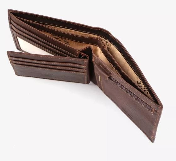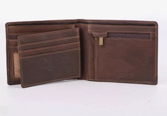 Romslig lommebok med løs kortholder fra The Monte. Laget av vegetabilsk garvet kalveskinn med vintage look.