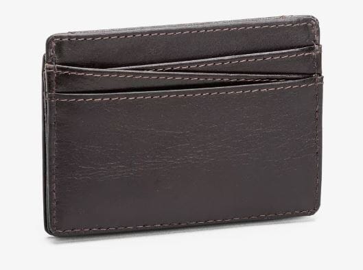 Diskret kortholder i klassisk vegetabilsk garvet bøffelkalveskinn fra Ted Cole. Kortsporene på innsiden er beskyttet mot RFID-skimming.