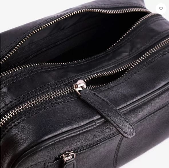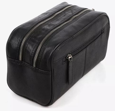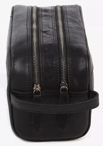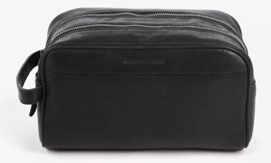 En klassisk og fin toalettmappe i skinn fra House of Sajaco med bærehank. Mappen har to