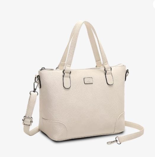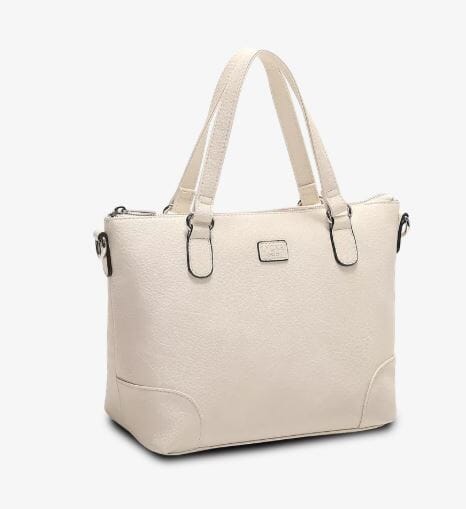 Den brede, stabile bunnen gjør at vesken rommer godt, og den ekstra brede åpningen gir enkel tilgang. To faste håndtak gjør den lett å bære i hånden eller på armen.
