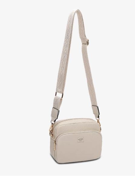 Kul skulderveske i "kameraveske" modell, laget av skinnimitasjon, fra Lycke Oslo.