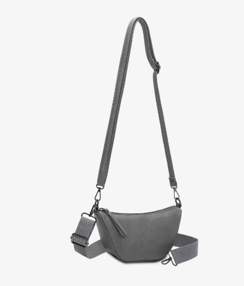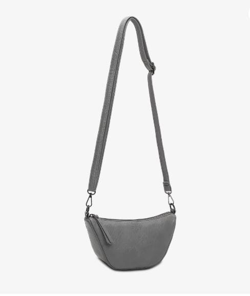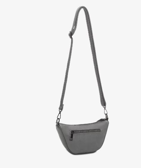 Detaljer: • Metalldetaljer: Gunmetal (mørkgrå, blank) • Innvendig: Én mindre glidelåslomme og ett åpent rom • Bakside: 13,5 cm glidelåslomme • Dropplengde avtagbar og trinnløst justerbar tekstilrem: 40 cm / 72 cm • Dropplengde avtagbar og trinnløst justerbar rem i skinnimitasjon: 39 cm / 72 cm • Veganvennlig