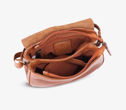 House of Nordic tar 70 tallet inn i 2026 med denne kule saddlevesken som har alt. Glidelås under klaff gjør den innbruddsikker, lett i vekt og i et hanskemykt glansfullt skinn i helt rett brunfarge.