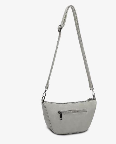Detaljer: • Serie: Duffy • Metalldetaljer: Gunmetal (mørkgrå, blank) • Innvendig: Én mindre glidelåslomme og ett åpent rom • Bakside: 15 cm glidelåslomme • Dropplengde avtagbar og trinnløst justerbar tekstilrem: 39 cm / 73 cm • Dropplengde avtagbar og trinnløst justerbar rem i skinnimitasjon: 38 cm / 73 cm • Veganvennlig