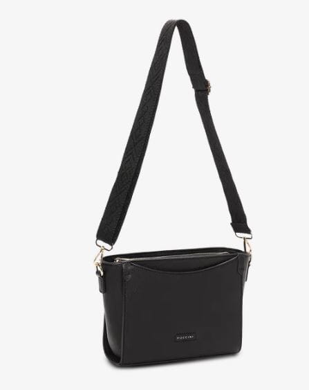 Stilren crossbody-veske fra Puccini, laget av myk og strukturert skinnimitasjon av høy kvalitet.