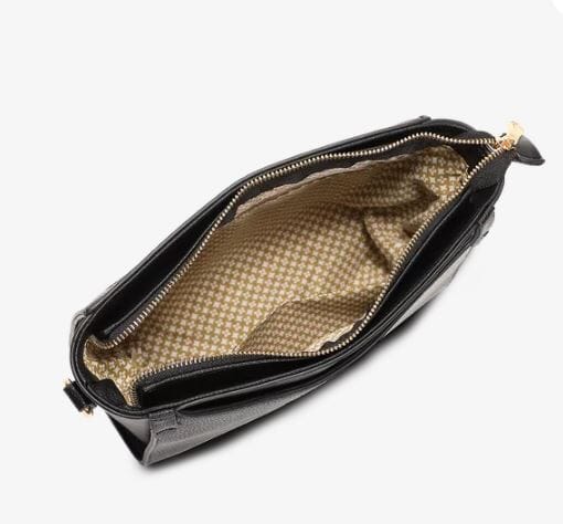 Detaljer: • Serie: Patricia • Metalldetaljer: Gull • Dropplengde trinnløst justerbar og avtagbar tekstilskulderrem: 35 cm / 68 cm • Innvendig: Én sidelomme med glidelås og to åpne rom • Forside: Åpen lomme med magnetlukking • Bakside: 17 cm glidelåslomme • Veganvennlig