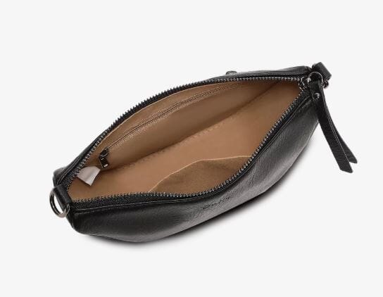 Detaljer: • Metalldetaljer: Gunmetal (mørkgrå, blank) • Innvendig: Én mindre glidelåslomme og ett åpent rom • Bakside: 13,5 cm glidelåslomme • Dropplengde avtagbar og trinnløst justerbar tekstilrem: 40 cm / 72 cm • Dropplengde avtagbar og trinnløst justerbar rem i skinnimitasjon: 39 cm / 72 cm • Veganvennlig
