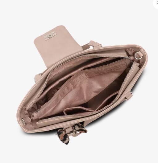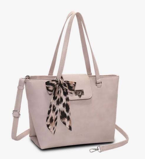 Vesken får et trendy uttrykk med sitt avtagbare leopardmønstrede skjerf, samtidig som de rene linjene, det elegante spennet og de gjennomarbeidede detaljene gir et sofistikert og eksklusivt preg som løfter enhver antrekk. Vesken er laget av strukturert skinnimitasjon som gir en moderne og luksuriøs følelse. Den generøse størrelsen gjør den ideell som jobbveske – her er det god plass til A4-dokumenter, en 13" laptop i eget polstret rom og alt annet du trenger i løpet av dagen.
