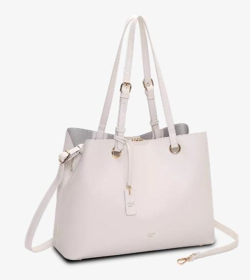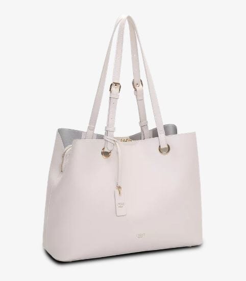Håndveske med 14" PC-rom Stilren og romslig håndveske i generøs størrelse fra Lycke Oslo. Laget av dobbelsidig imitert skinn med lekker metallskinnende bakside.