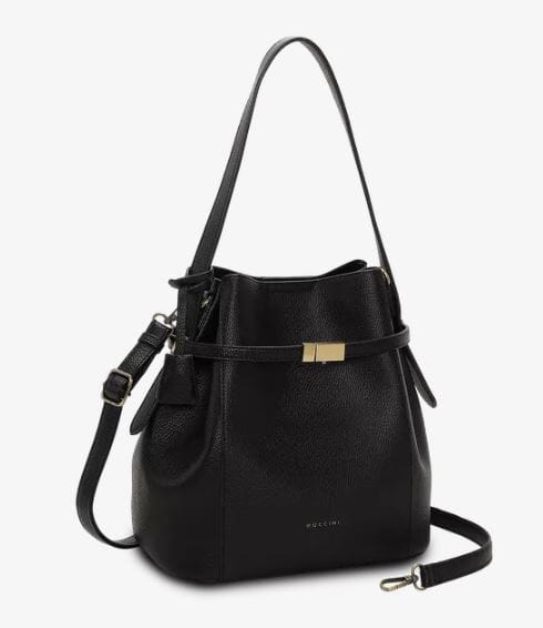 Skandinavisk elegant bucket bag fra Puccini, laget av ekstra myk, dobbeltsidig skinnimitasjon som gir en eksklusiv og behagelig følelse.