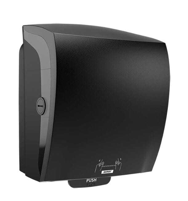 Katrin System Towel håndtørk dispenser sort for kontrollert forbruk. Minimal trekkmotstand og høy