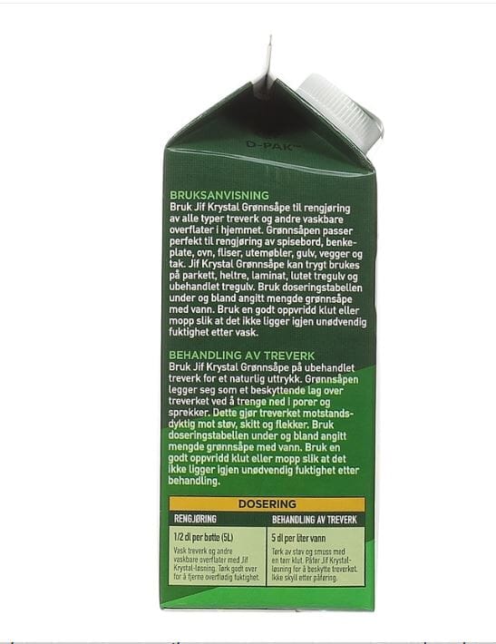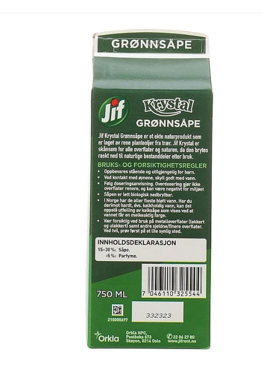 Jif Krystal Grønnsåpe er et ekte naturprodukt laget av rene treoljer.